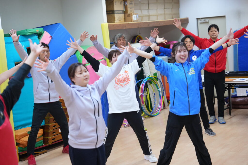 また、リズム研修や補助研修では、子どもたちが楽しく身体を動かせる環境づくりや、適切なサポート方法を実践的に学びました。